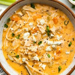 Creamy, spicy, and full of flavor, this Buffalo Chicken Soup is an easy weeknight win. Ready in under 30 minutes and perfect for buffalo lovers!