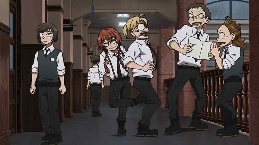 The biggest reveal of all, though, is that children – thanks to vaccines and nutrition – no longer need to sleep. In fact Ooshibu forbids the ones in his care from doing it, as it speeds the onset of puberty. And no student of his will go through puberty before graduating – which is why Ono-san wound up fleeing. This is preposterous of course, as all these attempts to snowglobe children are. Making everyone wear slacks (which I noted after Episode 3) won’t stop boys from being horny. Telling kids not to sleep won’t stop them going through puberty. In fact lying awake all night is a great way to go crazy fast.