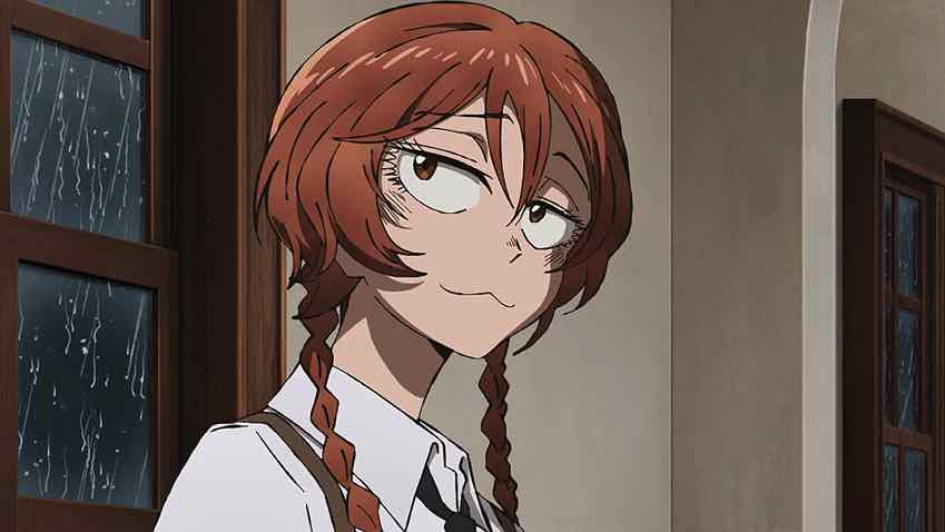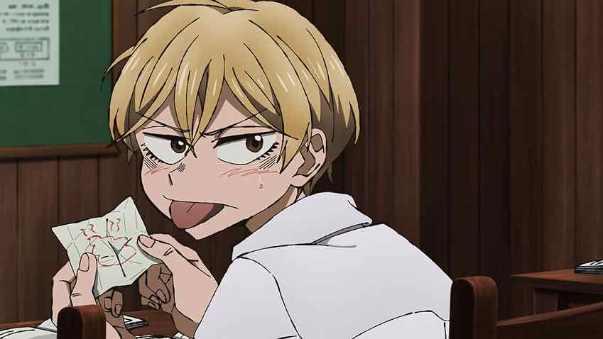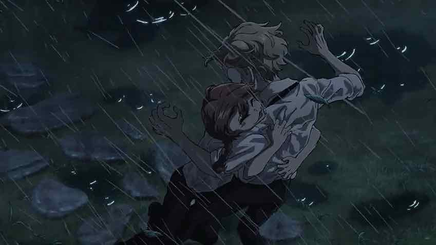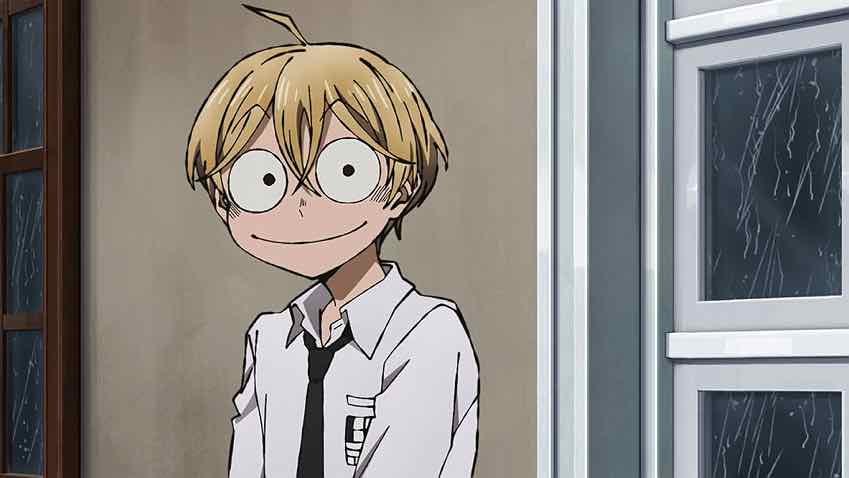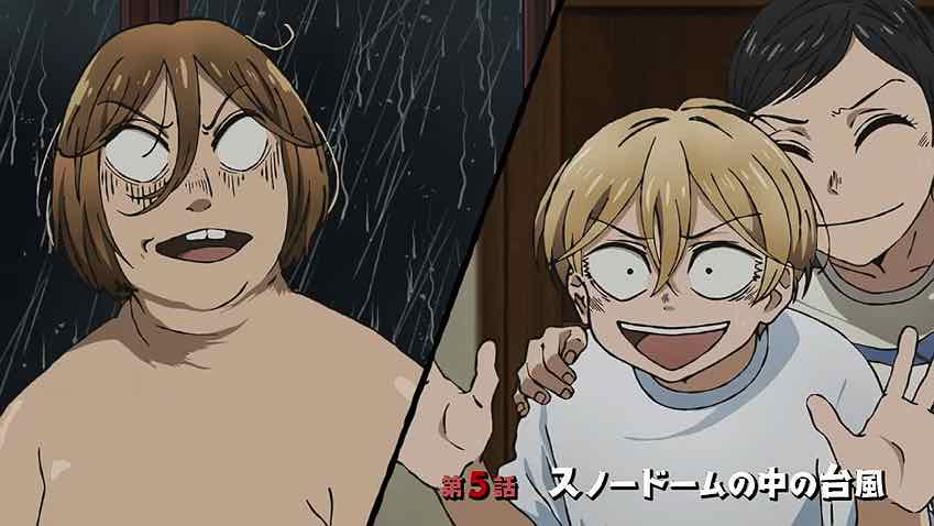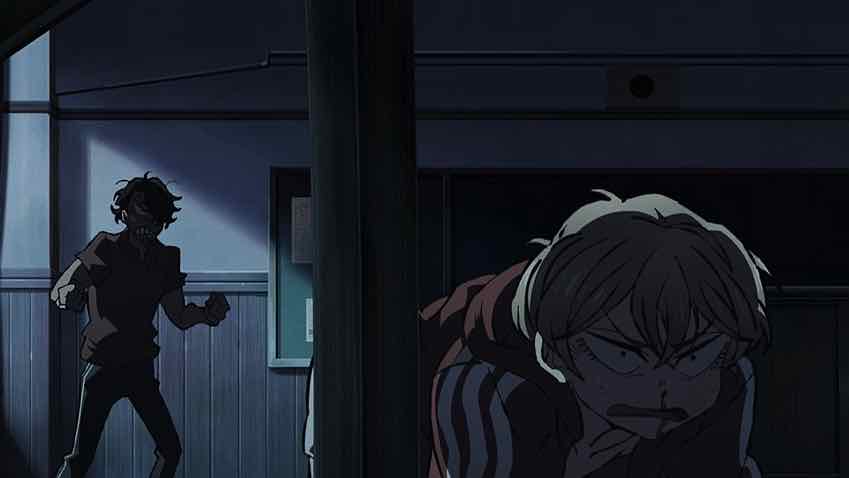 Scrambling the eggs even further is Kazao Niko, who we briefly met at the end of last week’s episode. She’s Sanda’s fiancee, because (another revelation) kids are assigned a partner and required to marry and have children. She calls Sanda “Kacchan” but generally speaking their relationship seems to be limited to her teasing (insert your own prefix here) him. Niko is a total loose cannon and a bit of a rebel, and a “passing” typhoon (in this setting typhoons stick around for a month) gives her a perfect chance to indulge her impulses.