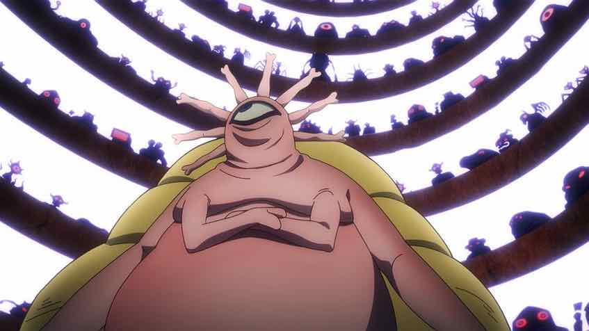 I think this episode was pretty emblematic of the state of OPM at the moment. Saitama sits around doing nothing, surrounded by a motley collection of hangers-on. The only characters really doing anything (besides the monsters) are Garou – who spends most of the episode unconscious offscreen – and Child Emperor. He’s always a positive because he actually takes his job seriously (the irony speaks for itself) and tends to be proactive. He’s the one basically taking charge of Waganma’s rescue (not that we have any reason to care about that, really). And Garou is the only one bothering to try and rescue Tareo, since no one else even knows where he is.