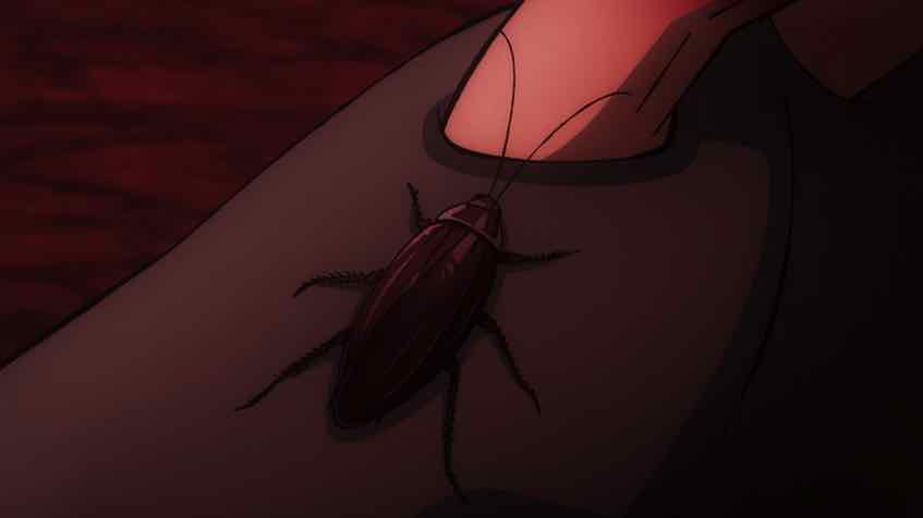 This is beast that Bundus mentioned to the Santa boys last week, of course. But Zanka isn’t destined to be the first to meet it – that would be Guita, the third member of Team Child and the only Cleaner who wasn’t paired off with a Raider. All she had for company was gokiburi-chan (thankfully her appetites don’t overlap with Zodyl’s). But he flies off, and in following him Guita runs smack dab into the aforementioned beast. And the evidence suggests that other unfortunates have encountered it already.