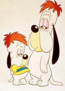 When Droopy bats, McWolf delivers a fast ball which he whizzes to catch himself at he plate. The fireball disintegrates to cinders in his mitt. McWolf also pitches a curve ball that admires the curves of Miss Vavoom, whistling at her. But Droopy keeps whacking home runs, chalking up a score of 190 for the Corn Dogs. When McWolf finally gets a hit, Droop extends his left arm like a telescope, catching the ball 100 feet in the air above him, and calls it part of the “7th inning stretch”. McWolf has had enough, and crates Droopy up in a box, tossing him on board a ship at the docks, which sets out for the open sea. McWolf returns to the field, declaring that Droopy has forfeited the game. Bit Dripple insists the game isn’t over yet. “What are you waiting for, the relief pitcher?” laughs the Wolf. “No – the wave”, responds Dripple, a a tidal wave appears from the ocean, engulfing the stadium, and returning Droopy back, riding on a surfboard and stating in typical underplay, “Cowabunga.” The Wolf cracks up, and goes berserk. He starts grabbing baseballs, pitching to himself, and whacks each ball out of the park, rounding the bases 191 times. Somehow, each hit is officially scored, and McWolf wins the championship. Vavoom announces that not only has he won, but he also gets a chance to play in the major leagues. The Wolf victoriously declares “I’m the king!” – and the best thing is, he’ll never have to see that little runt pitcher again. “Not!”, responds Vavoom – “Meet your new coach.” Droopy appears in a business suit, revealing his second career. ‘See you in the morning for practice”, he orders the Wolf. McWolf isn’t sticking around to face this fate. He loads himself into a pitching machine, and launches himself over the corn stalks in the outfield. In a curtain line that it is quite surprising passed the censors, Vavoom states to Droopy and Dripple. “All right, let’s hit the showers, guys.” Droopy and Dripple suggestively snicker between themselves, leaving the definite possibility of an anticipated shared stall, for the iris out.