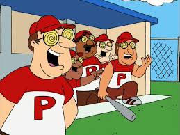 We’ll begin with a run-down of several baseball themed stories from “Family Guy”. As this show has a reputation for being considerably off-color, I’ll stick to plot points that are more generally suitable for family-friendly print – giving you a somewhat sanitized idea of what the storylines were about.