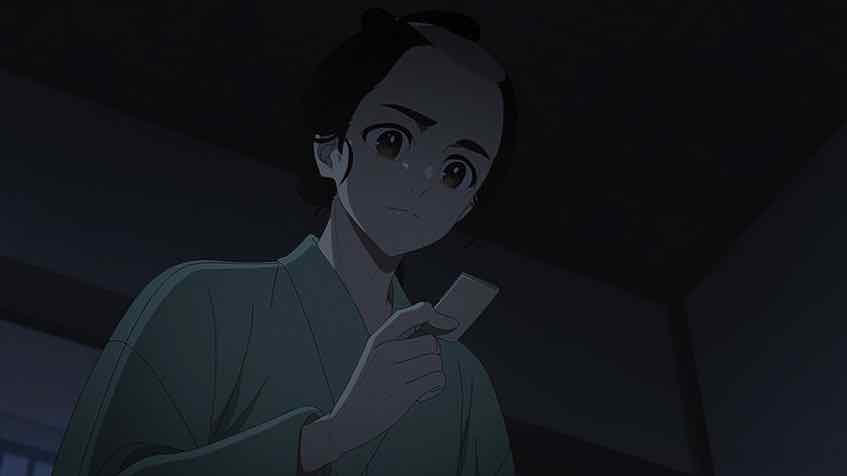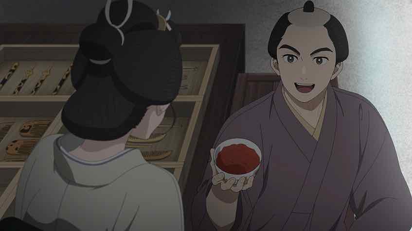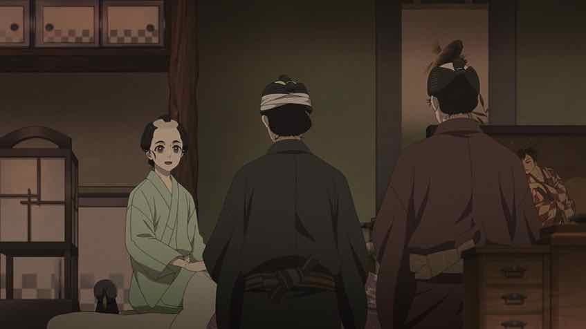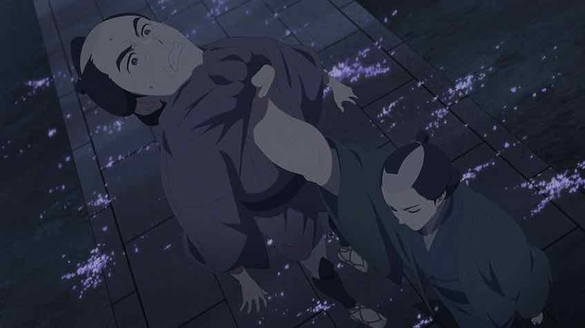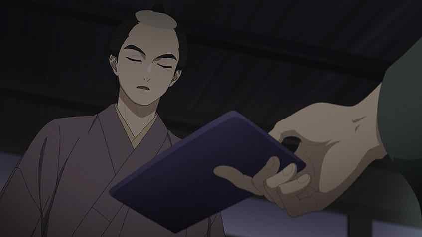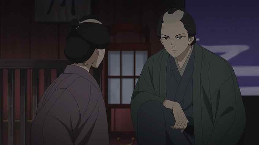As for Ichitarou. he’s not much of a presence in this episode. It’s clear that Nikichi devotion to him is genuine – stronger than he’s felt towards any human, to be sure. But their association too promises to be a brief one from Nikichi perspective, even if Ichitarou weren’t frail and weak. For his part Ichitarou is insistent on living his life for however long it’s his to live, which is an admirable quality in him. Perhaps its the reminder of his impermanence that Nikichi tale provides that prompts him to go once more to his brother – but this time as himself, to reveal the truth of their bond. Boldness comes naturally to Ichitarou – a reflection, I think, of how little he feels he has to lose.