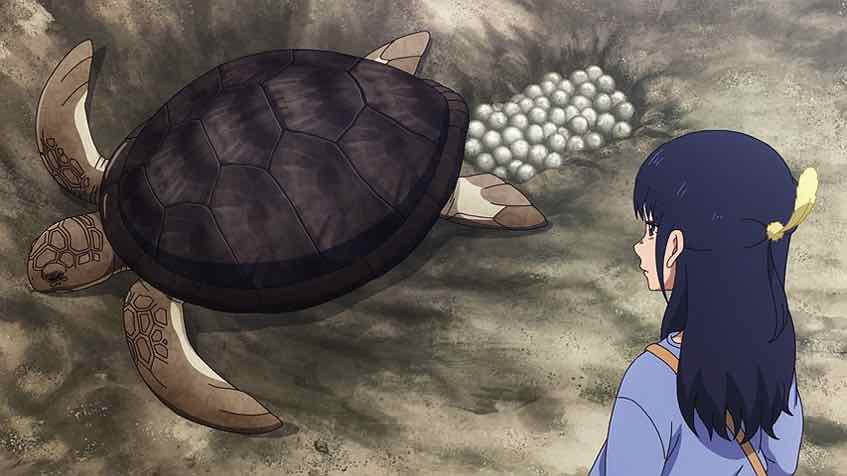 It’s Yuki who convinces Fushi that what he needs to grasp about humanity is love – not that Yuki is in any way capable of explaining it. Fushi goes off an another of his vision quests, this time turning into a sea turtle and going for a cruise in the sea. I have to say, even by Fumetsu standards this whole turtle sequence is seriously out there. Having Fushi randomly lay a bunch of eggs and break into turtle tears is certainly a choice. It’s so far beyond rational explanation that it seems pointless to call it a good or a bad one. It’s just Fumetsu.