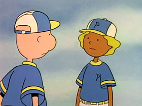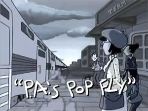 P.A’s Pop Fly (Disney, Pepper Ann, 2/20/00) – Pepper’s dad (in a visitation relationship with his daughter) takes her on an unexpected outing to a baseball game – a sport as to which she has shown no previous interest. The occasion – a player’s anticipated 700th home run, to break a record. Dad recounts how baseball is special to him, having once himself hit a grand slam to win a deciding game in an unknown regional league. At the game, Pepper finds herself surprisedly taking an interest in the events on the field – and the churros from the vendors, As the game goes into overtime, the anticipated long fly ball is hit – right to Pepper’s section. Pepper dives under the ball, and a mob of fans follows. Then, two security guards drag Pepper and her dad away, Pepper with the ball in hand, hustling them to a press conference room. The two are grilled with questions about the incident. Dad, still trying to quite grasp what has happens, responds matter-of-factly that it’s better than a poke in the eye. Pepper is more miffed about being dragged away from the stands, and having missed the ending of the biggest game of the season.