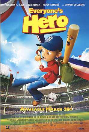 Everybody’s Hero – (IDT Entertainment/Fox, 9/13/06) – “Yankee” Irving is your typical average kid in the years of the Great Depression. He lives in the poorer neighborhoods of New York, and idolizes his hometown hero, Babe Ruth of the Yankees. He has more of a connection to this life than most kids – at least by relationship – as his dad is an underpaid groundskeeper/custodian at Yankee Stadium, just glad to be gainfully employed. But for all of this baseball connection in his life, Irving us about as far as possible from following in the footsteps of his heroes. He is short, unskilled, and the last person to be chosen for games by the sandlot teams of the backstreets. When told not to swing so as to draw a walk, he theorizes, “How will anyone know if I can swing if I don’t try?” – and of course strikes out. Dejected and feeling friendless, he begins his walk homeward, but spots a forgotten baseball near the field. Bringing it home, his surprises soon begin.