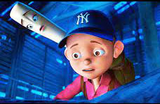 Irving finally meets the Babe in the dining room of a fancy hotel where the Yankees are staying before the final game. Despite having lost three games in a row, Babe tells the press that in baseball, anything can happen. Babe graciously permits Irving to approach the table, and listens to his story about the theft of the bat. But Lefty has also made it to the hotel, spots Irving, and switches the bat for a large loaf of bread, throwing off the credibility of Irving’s story. Irving and Screwie attempt to pursue Lefty again (with another incongruity of Screwie calling himself “Superball”, although Superman also did not exist in the Depression years), but are grabbed up by the Chicago owner, and whisked away in his limousine, to be locked in the stadium executive office as play gets underway. Screwie asks to do something that baseballs are known for – to break a window – and is thrown through the booth window by Irving, leading to the field. Lefty and Darlin’ are located, and ultimately, Irving delivers the bat back to Babe. But the team is down by seven runs, and Babe has already had what seems to be his last at bat. The demoralized team is ordered to produce their next batter at the plate within two minutes or forfeit the series. Babe proposes an idea which at this point can’t hurt – since Irving brought about a miracle in returning Darlin’, why not reward him with the miracle opportunity to bat in the World Series? Screwie finds himself in play, and Babe lets Irving take Darlin’ to the plate for his swing. Irving hesitates, knowing Babe is the only one who has known how to use the magic of Darlin’ before, but Babe shares a secret with him – that the magic comes not from the bat, but the batter.