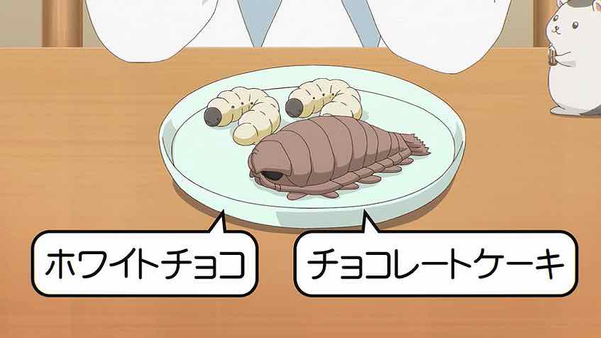 That gift did get a rise out of Kashiwada, no denying that. Did she believe his earnest denials and attempts to blame it on his sister? I would lean towards yes, but the fact that he did in fact have candy (“cider mochi”?) to give her softens the blow. He’s absolutely adorable in his abject misery at handing it over, but I think Oota kind of won this exchange – he had the balls to give Kashiwada her gift face-to-face, and she didn’t. And the surprise ending? The larva and isopod were actually sweets all along – kind of the perfect gift for a boy like him to give, actually.