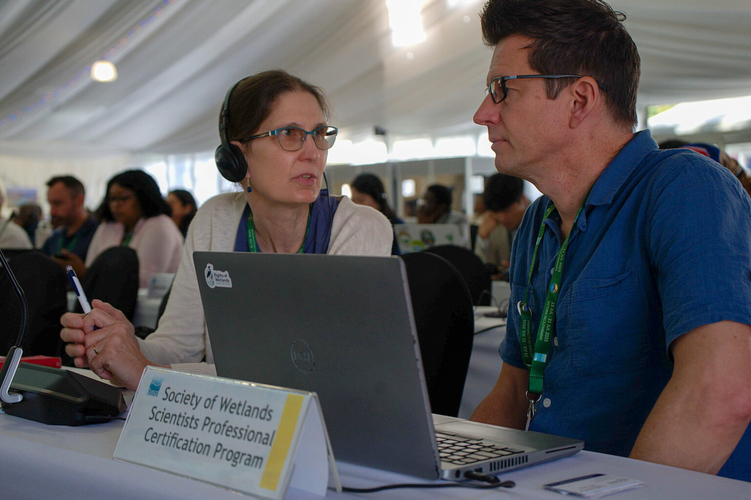 Seated behind a placard for the Society of Wetland Scientists, Davies and her colleague, British eco-hydrologist Matthew Simpson, took notes for the organization and whispered to each other about what could only be described as the unraveling of the conference.