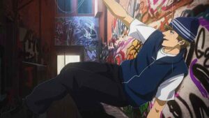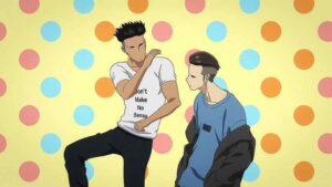 Things do pick up for him, though. The two Sakaya dudes who mocked him weren’t mocking him after all, which Kabo learns because they know Iori. They praise his performance in fact – and Iori doing so means even more. Wanda may be a brilliant dancer right now, but Iori tells Kabo he has a special ability to feel the music. I speculated last week that Iori’s style is better suited to individual than team competition, and his comments to Kabo more or less confirm that. What’s more, he tells Kabo that he expects the two of them are alike in that respect – natural improvisers who thrive when not bound by strict choreography.