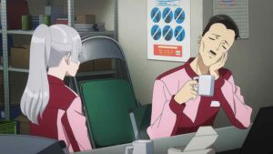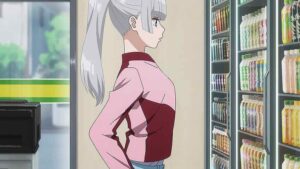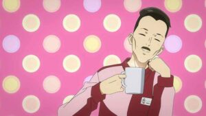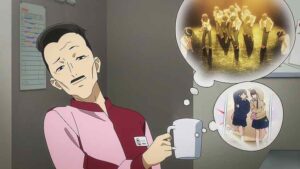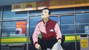 At this point we go into a flashback of Wanda’s last year of middle school. This was wonderful in myriad ways, not least because it was a reminder of just how superb a seiyuu Sakurai Takahiro is and how much he’s been missed during his ridiculous blacklisting. He brings great humanity and wit to the role of Takeda-san, Wanda’s manager at “6 Mart”. Takeda is a frustrated dancer himself, a MJ otaku, and he immediately bonds with Wanda once he sees her practicing her moves using the drinks fridge doors.