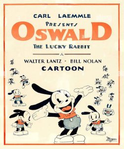 Animation at Lantz studio was getting more elaborate, and more expensive. Carl Laemmle had finally opened his pocketbook to a degree to keep up with the competition, and not only were the Oswalds showing better animation, large casts of characters, and more original plots (moving away from standard fairytale takeoffs), but Lantz would receive the green light (green as in money, green as in color) to produce aside from the Oswalds a short, sporadic series of six color subjects, made in two-strip Technicolor, entitled “Cartune Classics”. Despite limitations of spectrum imposed by the film process, these entries seemed to be somewhat brighter in hues than many counterparts from early Warner Merrie Melodies, and were generally well-produced, with lively musical scores. The temptation to have Oswald cross-over into this color run was irresistible, so the rabbit makes a short cameo in a Christmas cartoon discussed below, and two featured starring roles in later installments to be discussed in upcoming weeks. Few original prints bearing Laemmle’s name exist today from this series, due to the fact that, being in color, the six cartoons were among the first Lantz material to have reissue after Laemmle was ousted from the studio, credits being re-filmed to simply state “Universal Presents”. They would also be the earliest films included in the packages marketed as The Woody Woodpecker Show, separately distributed from the black and white Oswalds. Meanwhile, in the black and white cartoons, gags were continuing to sharpen up, many of this period showing an influence which appears to bear the telltale signs of Fred “Tex” Avery. Some of them bear his name on animation credits, yet others still appear to have the same feel – suggesting he may have been contributing gags in story sessions even when not assigned to actual animation on a project. Also, in the live-action field, Universal would release a forgotton but all-star musical affair entitled “Gift of Gab’, from which at least one of its own original song compositions would cross-over into the score of an Oswald film. A good period for watching, all around.