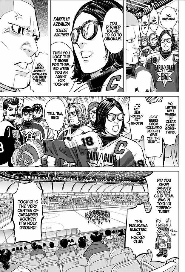 Dogsred, like Supinamarada!, is a hockey manga. Hockey is very popular in Hokkaido (for obvious reasons it usually thrives in cold climates), and I assume it’s something the highly-secretive Noda is passionate about. I grew up in Chicago and hockey is a pretty big deal there, but mostly in professional terms. The Blackhawks are a very popular franchise, but while some kids do play pond hockey in Chicagoland, it can’t compare to someplace like Minnesota or northern Michigan, where schoolboy hockey is a way of life. And Canada of course, the birthplace of the game and forever the Mecca of the hockey religion.