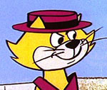 If you’re going to pull off a cel-layer placement error, it is further not generally advisable to showcase it by including it within the opening title sequence of your show. Yet, week after week, we watched the waiter and lunchbox trick from the title sequence of Hanna-Barbera’s “Top Cat”. TC grabs a sewer-worker’s lunch box out of a manhole, by reaching in with the handle of a walking cane. Without entering through the main entrance of a restaurant, TC sets up the lunch box on a rear garden table of the restaurant, seating himself adjacent to it but technically off the property, on the other side of a small perimeter hedge. The irritated sewer worker and restaurant waiter loom over TC with menacing faces, causing TC to tip his hat, and make a getaway in the nearest taxi. However, the restaurant waiter is some sort of abdominal magician. As he leans forward toward TC over the table, his stomach eclipses the table, meaning that he should also be passing in front of the lunchbox positioned at the table’s edge. Instead, the lunchbox cel is placed on top level, above the cels of the waiter, so that the lunchbox seems to be oddly penetrating the waiter’s stomach. I’ve heard of a quick lunch, but I didn’t realize assimilating the whole box within one’s person was the customary way of accomplishing this!