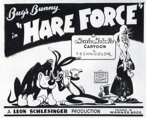 Bugs Bunny’s Hare Force (7/22/44) presents an odd variance of cel layer placement from shot to shot. In an early scene, Bugs is seen roasting a carrot by holding it into the open fire of a fireplace with a long stick. The first time, things are done right, with the flame cels on a secondary level, while the carrot is drawn on a separate layer placed above it, so as to allow the carrot to be seen prominently atop the flames. However, the same setup is revisited later in the film, after Bugs fools the dog by shutting the lower half of a Dutch door in his face instead of the whole door. This time, the layering of the cels is erroneously reversed, placing the flame cels on top and the carrot below. The result is that you can barely see the carrot, which appears to be totally swallowed up by the moving flames. (I hope Bugs likes his carrots well done.) A few moments later, the shot is again revisited – but this time, the carrot is back to top-cel position, and the effect is normal again. (Just for good measure, the film also tosses in an audio error similar to Disney’s “Lonesome Ghosts”, having Bugs heard in a muffled voice as if on the other side of a door, shouting “Telegram for Sylvester” (a dog, not the cat). The only trouble is, the door is wide open – so why the muffled effect?