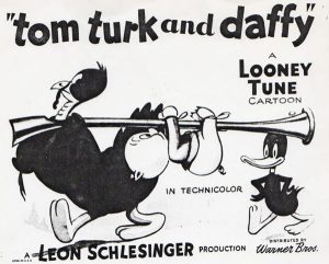 Then, it’s always good to place your cels upon the camera pins right-side up. The other way can lead to embarrassments. One of our readers pointed out a cel flipped over backwards within a scene of Porky Pig’s Feat, Porky’s last appearance in black and white. But the problem continued into color production. The choice example takes a little doing to spot, as it only appears on the screen for a single drawing, likely explaining why the studio never bothered to correct it. Warner’s Tom Turk and Daffy (2/12/44) features a classic foul-up with a cel overlay that was only supposed to depict Porky Pig’s eyes. For those not familiar with the ink and paint process, a cel is painted on the reverse side. First, the outlines of the pencil drawing are sketched on with ink. Then, paint is applied behind it, so as to leave the outlines fully visible ahead of the paint when the cel is inverted to its proper viewing side. However, the mounting pins on the average cel are symmetrical – so it is possible to place a cel with the back side showing instead of the front if you are not careful.