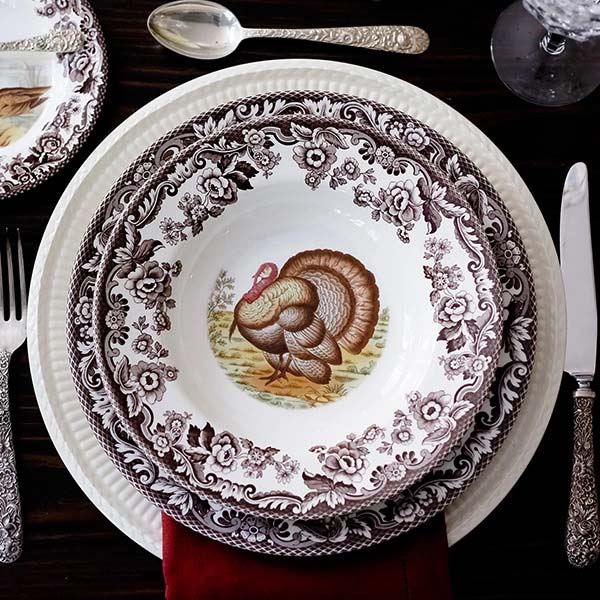 Set the table with classic turkey dinnerware available from Replacements, Ltd.