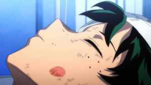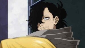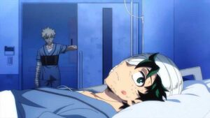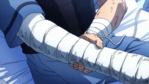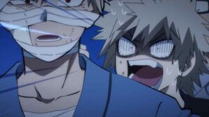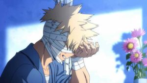 Cost is a recurring theme here. None of the main heroes escapes it, nor obviously the main villains. Bakugo has barely avoided losing his right arm, and his whole quirk hinges on using his hands. And Izuku of course has given up his quirk altogether, ember or no. Not that he would ever have considered otherwise, given the choice again. And One For All itself effectively existed to fulfill this mission. This hits Bakugo incredibly hard – so hard that he’s unable to avoid his most emotionally honest moment of the series. That’s how much Deku meant to him all along. And it hits All Might like a wrecking ball too, though he does his best not to let that show.