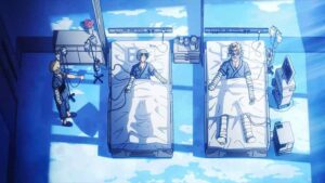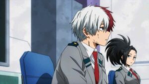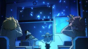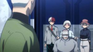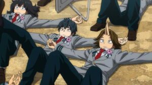 As the world rebuilds, it moves on for Yuuei too. There’s a graduation to consider – a late graduation to be sure, but one Mirio and the third-years certainly earned. Deku returns to school when his hospital turn ends. And to the hero course too, though it’s fair to wonder how exactly that’s going to work. Shinsou joins 1-A – 2-A for now, and given that some feel he’s a sleeper for the strongest quirk in the series that seems fitting. But Aoyama-kun chooses to leave in order to make amends for what he’s done. It can be argued that process has already happened – he was certainly integral to the final victory. But given that All For One is the literal reason he was in Class 1-A to begin with, it’s understandable that he wouldn’t feel right progressing with them.