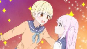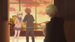 The payoff here is when Tabuchi demands to know what Kashiwada is thinking when, clearly, she’s thinking “I love Akito”. Odajima-san at least has the decorum to ask if she should really say, and since she seemingly is fluent in Kashiwada-go presumably gets her approval to do so. And then is utterly puzzled by Akito’s reaction which, again, is a bit preposterous but whatever. Now at least Akito has no plausible deniability where Kashiwada is concerned – he knows she’s into him and she made no effort to deny it. I guess that puts the ball in his court, to use an analogy suited to the theme of this episode.