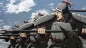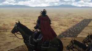 Kingdom is in one of those patches where I really need a scorecard to remember the names. That’s realistic – in a battle this size the number of commanders who play vital roles is astronomical. And the fact that the subtitles never match the voice track because each name has two readings makes a bigger difference than you’d expect in ease of remembering. Strategy is more or less decided going in, and once the fighting starts tactics take over. And it’s often the in-the-moment calls made by field commanders cut off from central command that determine who triumphs and who falls.