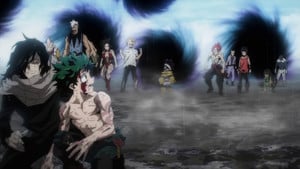 with no arms when all of a sudden, his classmates jump out a portal and pummel All for One possessed Shigaraki. Aizawa emerges from the portal and the title of the episode appears to refer to Aizawa sending in the cavalry.