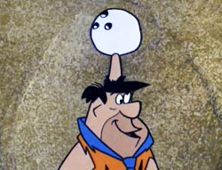 As budgets increased over the years, the studio was eventually able to get largely away from such oops moments, and in all fairness, never committed anything as egregious as Augie Doggie talking as Doggie Daddy, Top Cat talking as Dibble, or George Jetson talking as Fred Flintstone. Speaking of the Flintstones, perhaps the unexpected laughter from hearing a wrong voice in the wrong mouth was an inspiration for the penning of the script for Monster Fred (9/24/64), a Halloween episode in which Barney takes an injured Fred (conked on the head with his own bowling ball at unlucky bowling lane #13) to the random phone listing address of Dr. Len Frankenstone (overlooking that the phone listing is under the category of “Mad Doctors”). The Doctor of course is experimenting with a room-filling brain-transfer device with rock helmets and two boulders struck together like flints to create an electric spark. In the course of the episode, virtually everyone’s brain becomes scrambled, with Dino talking as Fred, Fred yapping as Dino, Fred switched to Barney, Barney as Fred, Wilma and Betty as Fred and Barney and vice versa, and finally everyone back to normal except the Doctor himself, who becomes a duplicate of Fred, uttering the trademark “Yabba Dabba Doo!” This script was no error, but just shows what can be done when the impact of an error is properly harnessed for comic purposes.