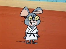 It seemed we would have to wait until the television era to see this kind of problem repeat itself. Champion of all such bloopers was Hanna-Barbera. One of the earliest Pixie and Dixie cartoons is a prime example, Judo Jack (10/6/58). At approximately 2:02, the doorbell of the exterior door of the mousehole rings. On soundtrack, we hear Pixie observe, “That’s probably Judo Jack right now.” Next, we hear Dixie call out, “Come on in, Mr. Judo.” But on screen, Pixie delivers both lines back to back, in the same shot. Again, someone seems to have failed to write down a change in speaker on the animation timing sheet, and the animator blindly followed orders, having never heard the soundtrack for himself. The problem repeats itself at approximately 6:57, with Dixie fooling Junks by posing in the disguise of Judo Jack. The soundtrack has Pixie stating, “Hey, the trick worked”, followed by Dixie imitating Jack’s dialect but with a Southern drawl, stating, “Ah so, y’all.” But on screen, Dixie does all the talking for both lines. Vocal tracks from this film which surfaced on a Colpix LP include several additional lines of dialog which did not make the final cut of the film, and presumably had to be cut to fit running time. So there may have been a degree of last-minute confusion in preparing the final track, and from it the timing chart. Was this rush or confusion the ultimate cause of the instructional errors to the animators? Ah, if only someone had thought to ask Bill or Joe about it in some past interview, before they moved on to that great cutting room in the sky.