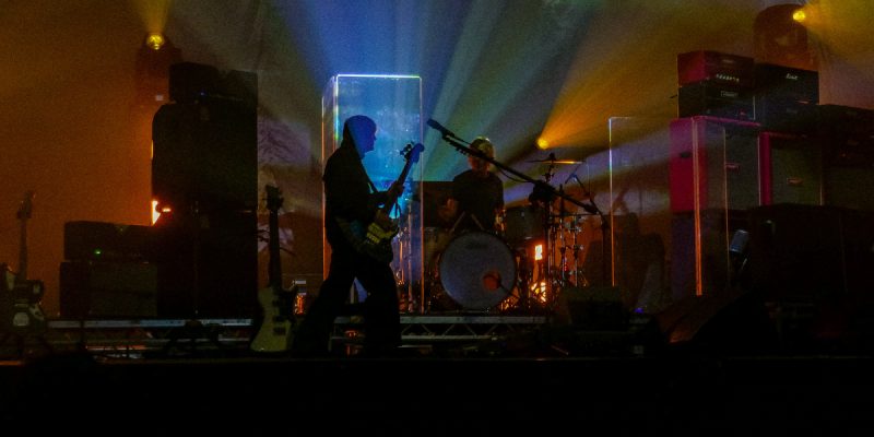 The setup behind guitarist and singer Kevin Shields featured dozens of amps, all of which added to the uproar emitting from the speakers. For each song, Shields used a different guitar, all tuned differently by technicians who worked overtime to ensure each instrument was ready for the beginning of the next track. Each member of the group played through pedals with varying degrees of distortion in order to create their famous “wall of noise,” which was deafening yet provided a solid base underneath the melodies.