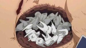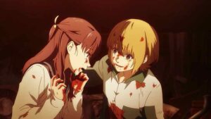 That belief leads to Funa (the naginata girl) being ended by Mizuha (under Nokker control). It’s the kindest thing, right? What’s hilarious is that Mizuha wakes up from these interludes and she’s just as loopy as she is when her Nokker is in charge. it also leads to the guy who’s interested in Mizuka, Rikuya, having every bone in his body broken (it’s not absolutely clear how this played out). The ball is really in Fushi’s court here – the Nokkers claim they want to live alongside him but their view of right and wrong is obviously something Fushi can never stomach.