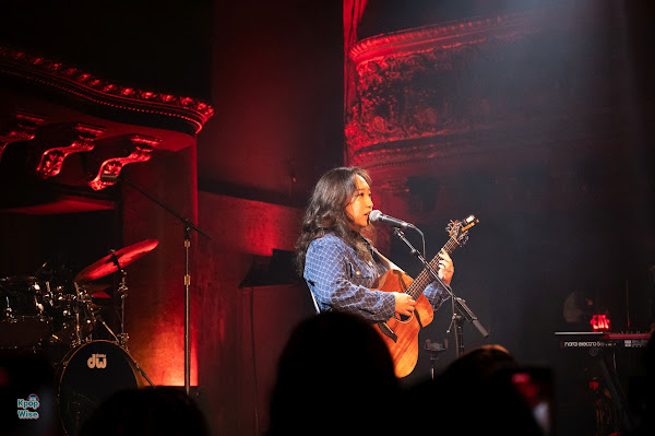 When Sarah took the stage with her band, she opened the show with “Let’s Run Away,” an R&B-styled band song from her 2022 album How I Remember. Listeners soaked in her soothing vocals while enjoying the accompaniment of her band—Patrick on bass (and also her music producer), Kurt on drums, Taka on keys, and Mario on guitar. Sarah performed a variety of instrumentally rich songs with the full band, such as “Summer After Senior Year” and “Once in a Moon,” before eventually stripping things down to play her guitar accompanied solely by Taka on keyboard.