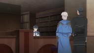 I like how everybody sees him dressed with tassles and immediately falls at his feet in worship. Or maybe it's the cravat. In any case, he's barely dressed any different from everybody else past two minutes into the introduction, and yet, this is how they decided to explain that he was reincarnated as a noble. By his clothing. Must be really easy to scam the hell out of people in this gormless world. He spends the rest of the episode talking to NPCs. A whopping three of them. Mostly his brooding mercenary boyfriend, but also a merchant and librarian. About exciting things. Like… the current political climate, mild, the current state of affairs, mild, and the current weather, mild. Story is really blasting straight ahead here.