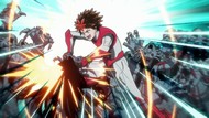 Plus the homages to the old series got… worse again, instead of pleasantly disconcerting like humming old theme songs for your massacres. At least, that's what I assume the entire eyedropper and timestop schtick was all about. That he then forgot he could do as soon as the guy did his magical girl transformation sequence, which is very on-brand for a half-assed magical boy kid's show from thirty years ago, but significantly less than I expected after the overtures of last week.