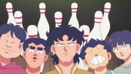 While I'm… appreciative, I suppose is the word, that this is carrying on the spirit of 90s ADHD slapstick, it's not something I can say I enjoy. I also had the thought for a moment that it feels like forever since a show went to a bowling alley, but then I remembered that terrible time-slip bowling anime from a season or two ago and made myself mad at anime. For the record, this dude stretching his arm, getting sucked into the pin machine, and turned into a ball, was more realistic than the bowling was in that show.