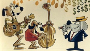 Lest we forget, there was also the knock-off. Total Television’s last effort, “The Beagles”, on CBS. You could already tell it was cheap when the number of “performers” was halved from four to two. There was no Ringo to rely upon for dumb laughs, and little-guy Tubby was no Jerry Lewis (though his voice was styled to be) when it came to trying to get smiles by being scared or taking it on the chin. There was only one plot – manager Scotty would plan some dangerous new publicity stunt to plug the Beagles’ latest song, while the two performers would face all the peril. Every single week. God help anyone on Scotty’s client list. I found him to be totally heartless, and not in a funny money-grubbing way like perhaps a Hokey Wolf. It was a feeble concept, and after a couple weeks, I grew quickly tired of it. It aired late in the broadcast day, so at least if you could see (as you normally did) that it was more of the same old thing, you could tune out on it, and get on with your daily routine. This is probably what the rest of America did too, accounting for its short single-season of episodes, and its now virtually-forgotten status. It spawned one hard-to-find LP of original songs, and, quite honestly, the music wasn’t so bad judged by the contemporary standards of its day – certainly more memorable than any of Hanna-Barbera’s later rock efforts, and to me, most of the Archies’ material. Perhaps because of the music rights, it received no re-syndication or rebroadcast on Total’s compilation shows such as “Cartoon Cutups”, and only less than a handful of episodes have surfaced on the internet to date. The only one currently available in color (though the print is about a full second out of sync), and the only presently-available complete story (as most storylines consisted of four parts instead of two) is embedded as a sample below.