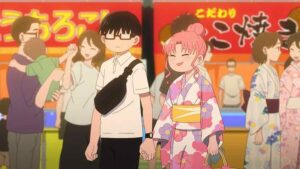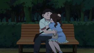The little moments that bind a couple together – like the shared love of the smell after a rain (it’s called “petrichor” by the way) – are a big part of this story. When I call this series Oktoberfest it’s not really an exaggeration. It’s much more about enjoyment than overcoming obstacles. There’s no false drama at the festival – nobody gets lost and a sandal strap doesn’t even break (aware of that danger Miyu wisely wore rubber shoes). It’s just the pair of them having a good time and slowly inching their relationship forward. An amorous couple smooching on a bench is a reminder for Miyu of the yawning chasm that lies ahead, but even that’s not a major source of stress at this point. What’s the rush?