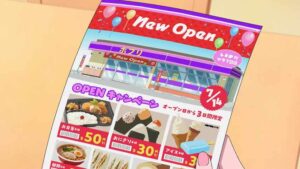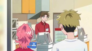 Then it’s on to the brand new convenience store opening in neighborhood, and the way Miyu gets excited about it is again a totally authentic adolescent moment. Mom asks her to buy toilet paper (mortifying), Oni-san cigarettes (she refuses). It’s opening (coupon) night, and most of the gang shows up. That proves especially mortifying for Taira-kun, who pretty much exists to be mortified anyway. Miyu has gone out in full frump attire, and is mortified (this is adolescence) when Yuusuke shows up on his bike. She vaporizes, the flees, but he soon catches up. It all works out though, as she explains that plating is as important as the way the dish tastes and he opines that she tastes good enough to him that he doesn’t really care.