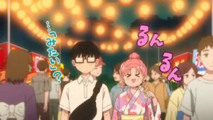 The relationship part is all about that execution of familiar tropes thing. I don’t think we’ve ever had a summer festival in Bokuyaba (even it did fireworks) but that just highlights the difference in approach – a series like this one not checking boxes of this familiarity seems almost unthinkable. Miyu agonizes over all the usual stuff, starting with whether to go to the packed fireworks festival or the much calmer local festival – and wisely chooses the latter. Then whether she should wear a yukata, and how she’ll look in it. When Yuusuke tells her “beautiful” that’s a knockout blow – she’s still at that age where the best she can usually hope for is “cute”.
