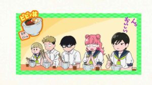 A pattern seems to be developing where the A-part focuses on the school and supporting cast, and the B-part is a relationship chapter. As both are clicking that works for me, and we get a fun little intro about the upcoming end-of-term exams. Miyu must be a pretty good student if the baka brigade wants to copy off her, but Yuusuke is obviously in another (figurative) class. He proves to be a pretty good tutor as well during the library session, and then gets invited along for bibimbap after. Incidentally that whole “Pipimpap” exchange was an incredibly truthy teenage thing.