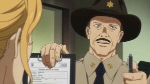 That’s how Charlie recognizes people – from their walk. He thinks differently from humans, that’s clear. He offers the trio the chance to surrender to the cops and avoid getting waxed by him and dragged to them unconscious. Feyerabend agrees (that it’s a ruse is obvious – to us). On the ride over he asks Charlie why he doesn’t ask any questions himself – isn’t he curious who the people who attacked his parents are? Charlie retorts that there’s no point in listening to lies, and Lucy has already declared him a liar. “I am a a liar”, Feyerabend admits. “But liars tell the truth sometimes. The truth is still the truth even if it’s a demon speaking it”.