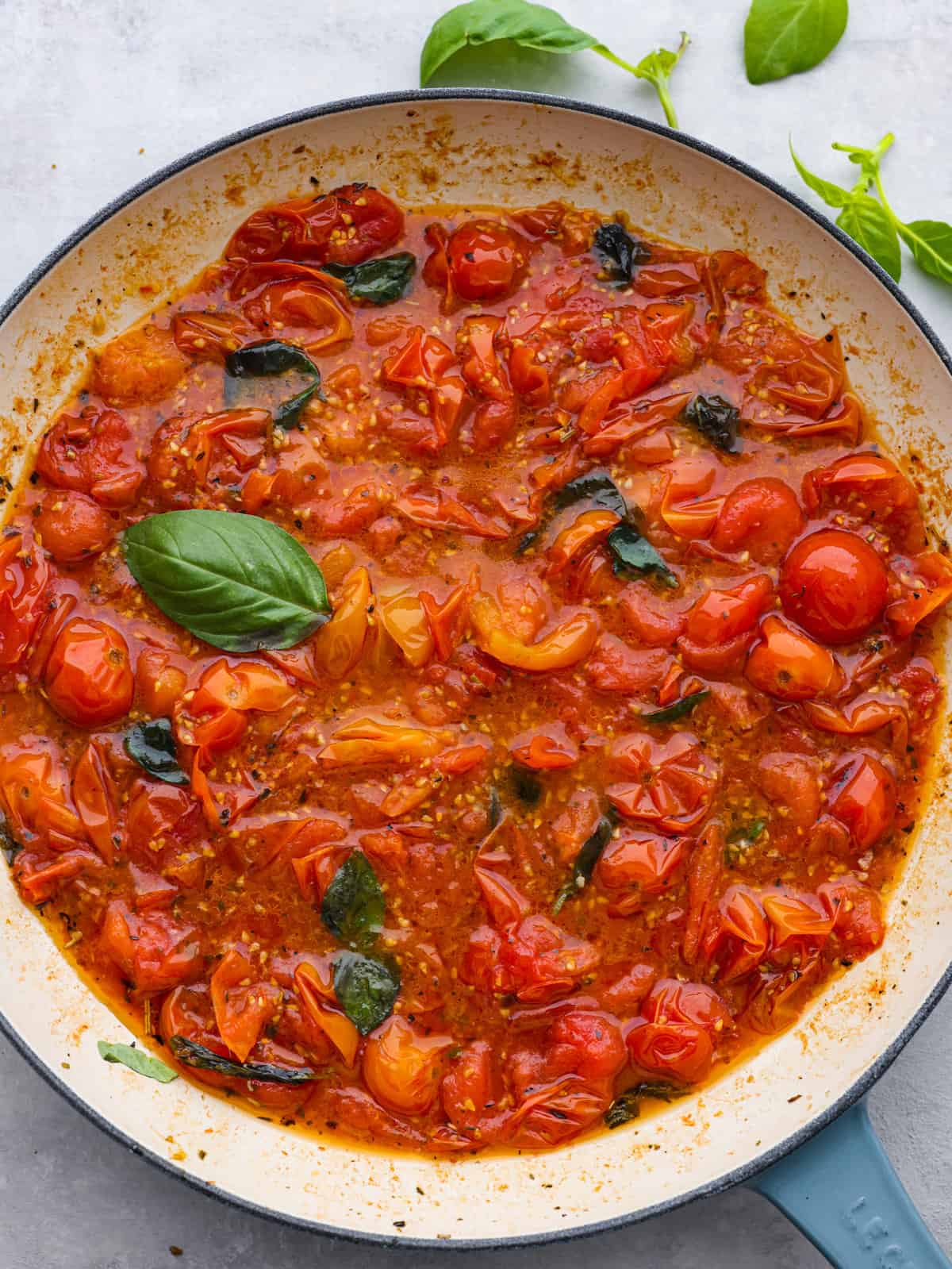 This three ingredient tomato sauce is made with just tomatoes, butter, and onion, simmered slowly for pure, classic flavor.