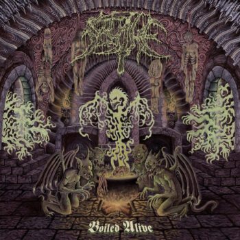 Scythe doesn’t make grand statements about existentialism or introspection, nor do they redefine a genre. First and foremost, Scythe is here to serve up sickly, sticky licks with blithe recklessness. This fearsome foursome drops track titles that ooze with enough viscera (“Liquified Entrails,” “Of Pure Goriness”) to squelch onto a Cannibal Corpse setlist while harkening to soundscapes defined by Pestilence and Autopsy. Throughout Boiled Alive, the pace oscillates between frenzied paroxysms and plodding crawls, often within the same song (“Necrophilic Corpse Orgies”). Though it would be easy for these dynamics to jostle listeners, the savvy songwriting avoids clumsy transitions and affords an entrancing experience. Ultimately, Scythe guides listeners through a curated gallery of horror that’s as thrilling as it is fulfilling.