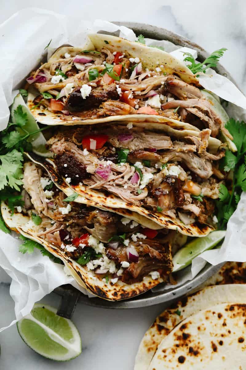 Top the tacos with ⅓ cup sliced green onionshe remaining green onions and serve immediately.