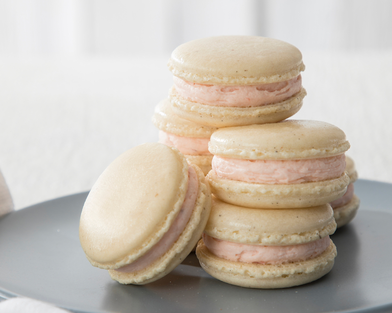 Vanilla Bean Macarons with Strawberry Buttercream