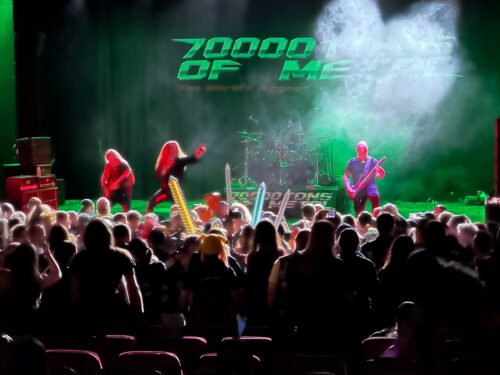 From there we beered up and then caught death metallers Skeletal Remains back in the lounge, and they were appropriately heavy and caveman as fook. Perhaps the caveman shit went too far as they blasted way past their allotted time, and soon thereafter, rumors started spreading that a certain band member was getting hammered and way too touchy-feely with the female cruisers. This ultimately led to him being confined to his cabin and the band getting banned from future 70000 Tons events. After Skeltal Remains decamped, we stayed put in the lounge as up next was none other than the one, the only…Jag Fucking Panzer!! A huge staple of my teen years, these Colorado classic US power metal masters dropped the iconic Ample Destruction back in 1985, and I’ve loved them ever since, but never got to see them live. Because we were hanging around as the band set up, legendary vocalist Harry “the Tyrant” Conklin came over to chat and offered us “Tyrant coins,” which are basically a commemorative Jag Panzer challenge coin. We took them happily, and I tried not to be too fanboyish. I also got to speak with founding guitarist Mark Briody, and he was as nice a guy as there is. When Panzer took the stage, they proceeded to rip the crowd a new one with a string of timeless cuts from Ample Destruction and select gems from their later releases. I was floored by how powerful Tyrant’s voice was live, and this was my highlight of the trip thus far. I was very glad we were dead center front row for this one!