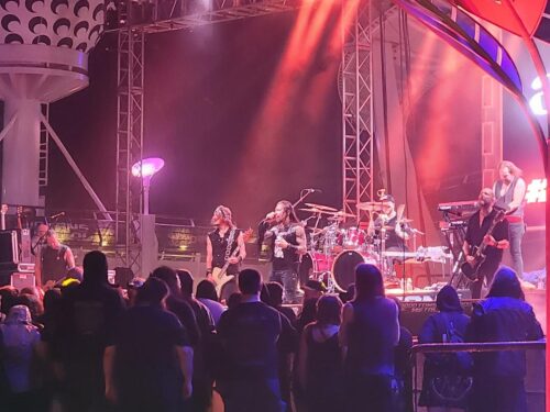 Next was the one and only time Madam X and I had to part company, as she was dying to see Beast in Black and I needed to see Jag Panzer’s second set and both went off at the same time. This Panzer set was a “drop the needle” on their classic album Ample Destruction, and I couldn’t miss seeing them run through it from start to finish. This time Jag Panzer got the rink stage, which is far better than the lounge, and once again they brought the crowd to their knees with masterful renditions of cuts like “Licensed to Kill,” “Warfare,” and “Harder Than Steel.” Tyrant again demonstrated the sheer power and force of his ageless pipes, and the band made sure to leave everything on the stage. I even ended up with an official Jag Panzer wristband in the process. Sometimes it’s good to meet your heroes. Madam X was equally blown away by the Beast in Black set, making me wish I had caught that show, too.