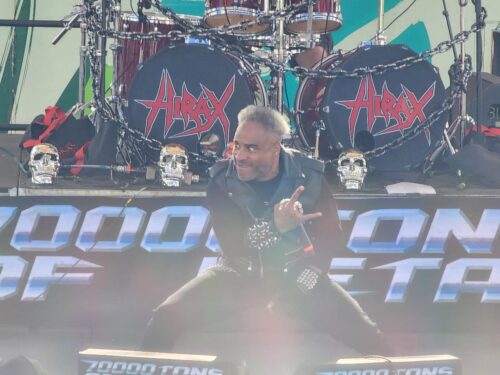 After that, Anthrax took the pool deck stage, and lo and behold, bassist Frank Bello was missing in action. In his place was a guy who looked a whole lot like Joey Vera of Armored Saint, Fates Warning, etc. Turns out it was Joey filling in, as Frank had to leave the ship to get to LA to accept his Grammy for best Live Rock performance for Yungblud’s rendition of Black Sabbath’s “Changes” at the Back to the Beginning concert. I have no idea how Frank got off the ship or how they mailed Joey in, but he fit right in, and Anthrax did another classic set, even hitting “Deathrider” from the debut and “In the End” from Worship Music. Queens, NY, represent!