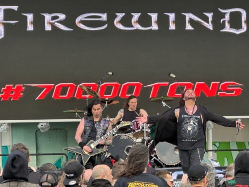 Off to the pool deck we went, thereafter to catch some of Firewind’s set. I wanted to see Gus G wank his way to the moon in person, and I was not disappointed. I was surprised to see Herbie Langhams wasn’t performing vocals, and instead, former frontman Henning Basse (ex-Brainstorm, ex-Metallium) was there on stage. Together they plowed through mighty tunes like “Ode to Leonidas” and “I Am the Anger,” with Gus showing why he’s considered one of metal’s top axe masters. The weirdo semi-death, kinda-Goth Tribulation were next. Unfortunately, they were derailed by technical issues and lost some equipment in transit, and opened their set 20 minutes late. Even when they finally got going, they were still plagued by sound issues. They did their best, but they didn’t get to present themselves properly, and things were a bit lackluster overall.