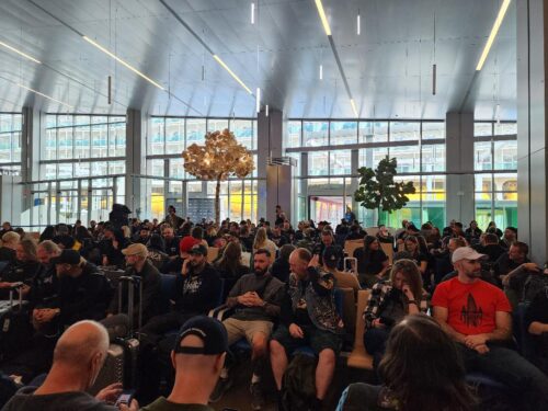 Mere days before we were scheduled to fly down to Florida, the massive bomb cyclone winter storm dubbed “Fern” clobbered most of the eastern seaboard and dropped 15 inches of snow on our Long Island hometown. This scrambled all the central, southern, and eastern US airports something fierce, and with news of thousands of canceled flights in the days leading up to the cruise, we stressed mightily that we might not make it to Miami to catch the ship. The 70000 Tons group on Facebook was littered with tragic tales of folks getting their flights cancelled multiple times, with some opting to skip the airports entirely and try to make it by car from faraway locales.2 As the Metal Gods willed it, we got to the airport, made it to a not-very-sunny Florida on time without any hassles. We reported to the Port of Miami the next day, and the adventure began!